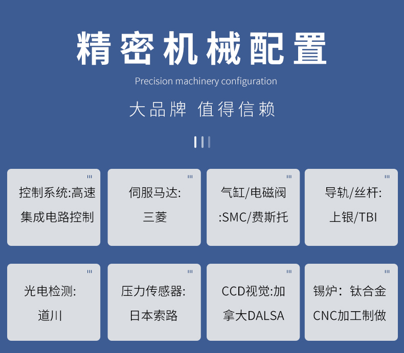 檢測裝置 Alarming device CCD端子外觀檢測(選配)、氣壓檢測、壓力監(jiān)控、CCD端子入殼檢測、缺電線檢測、膠殼上料檢測、端子上料檢測